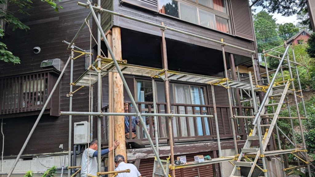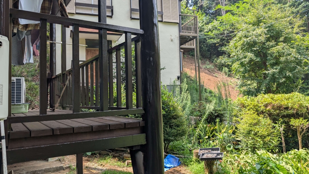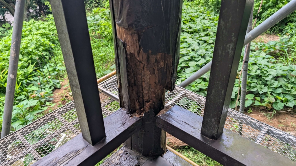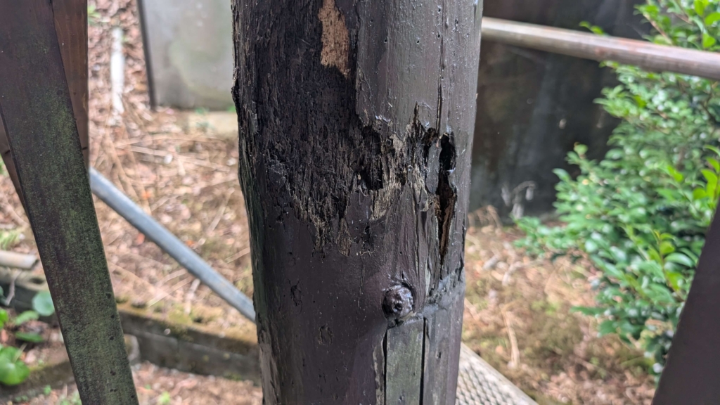 今回ご相談を受けたのは屋外のウッドデッキの柱です