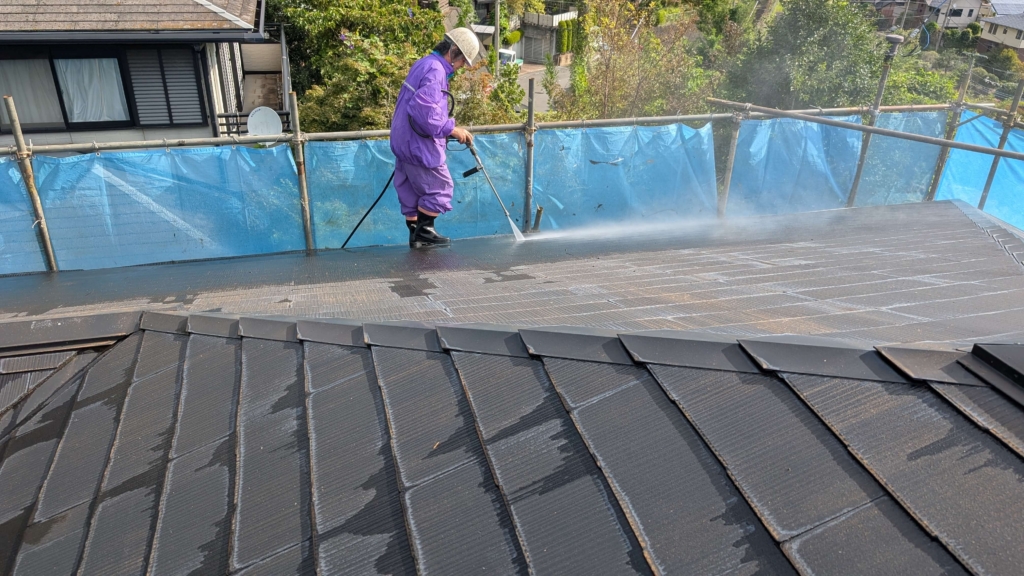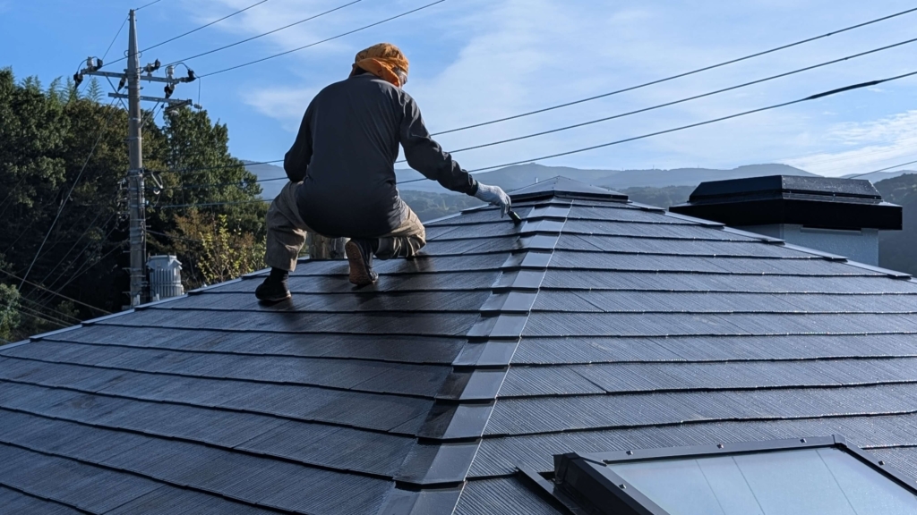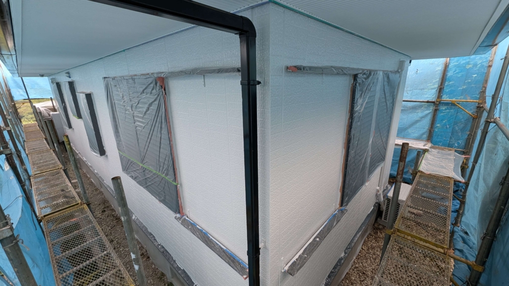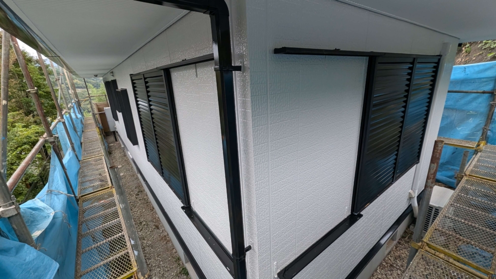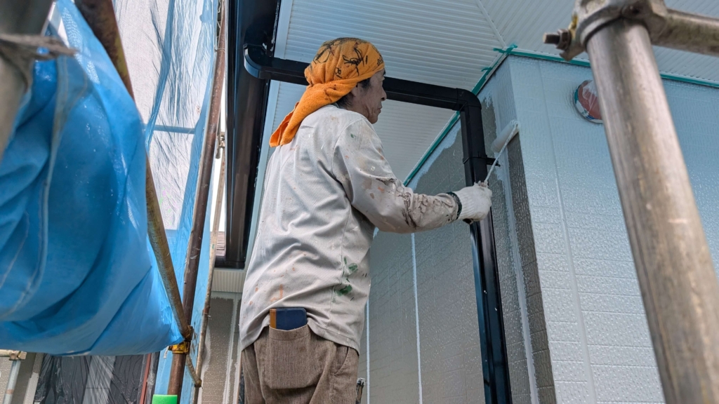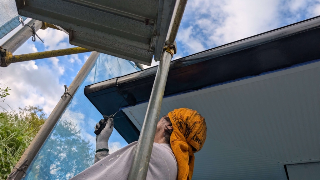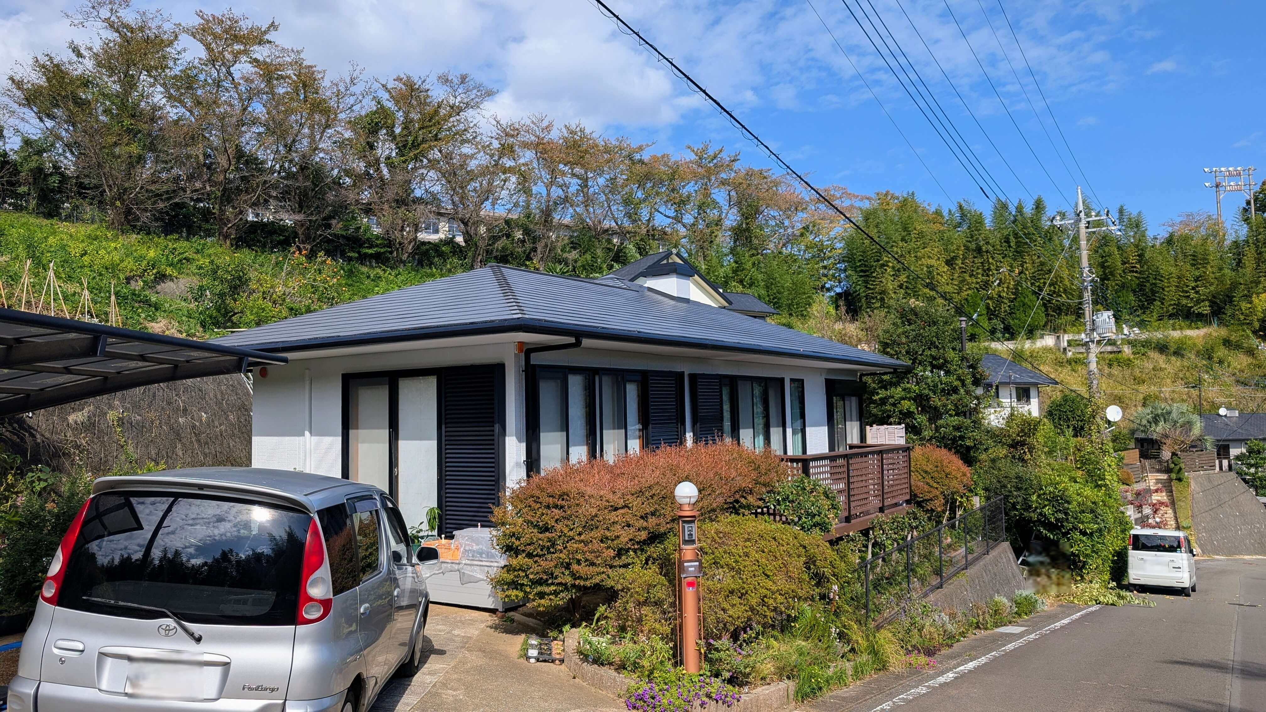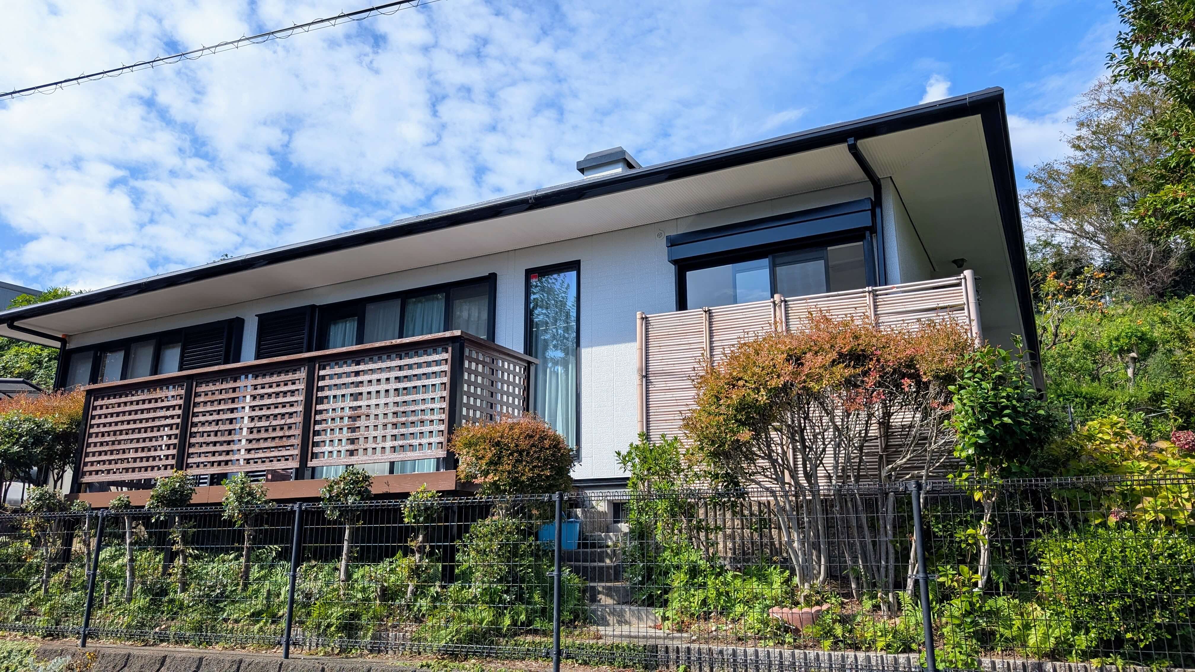 屋根の塗装が色褪せてきており壁も手でなぞると手が白くなり そろそろ塗ごろだなと感じていたのでリフォームに踏み切りました 屋根の色はブラウン系にし壁と軒天は白く明るい色にしました。
