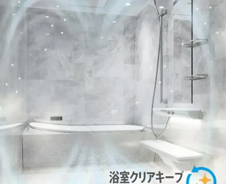 「クリアキープ」は、TOTO独自の“きれい除菌水”を使って、天井・壁・床にミストを噴霧。黒カビやピンク汚れの発生を抑えて、浴室を清潔に保つ仕組みだ。